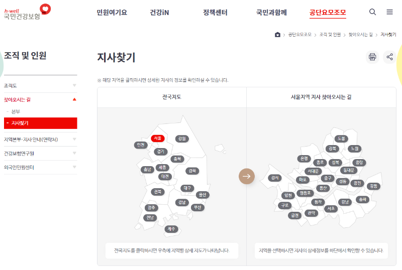 오프라인 신청을 하실 경우에는 시범지역을 관할하는 공단 지사에 직접 방문하셔서 신청하실 수 있습니다. 내 근처에 있는 공단지사의 위치를 알고 싶으신 경우 다음에서 찾기가 가능합니다.
