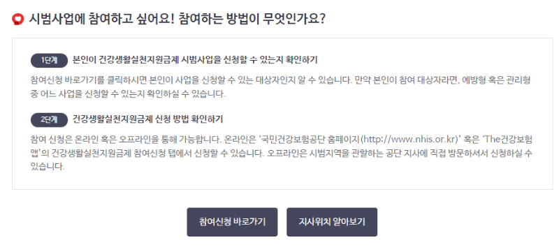 (1) 본인이 건강생활실천지원금제 시범사업을 신청할 수 있는지 확인하기
